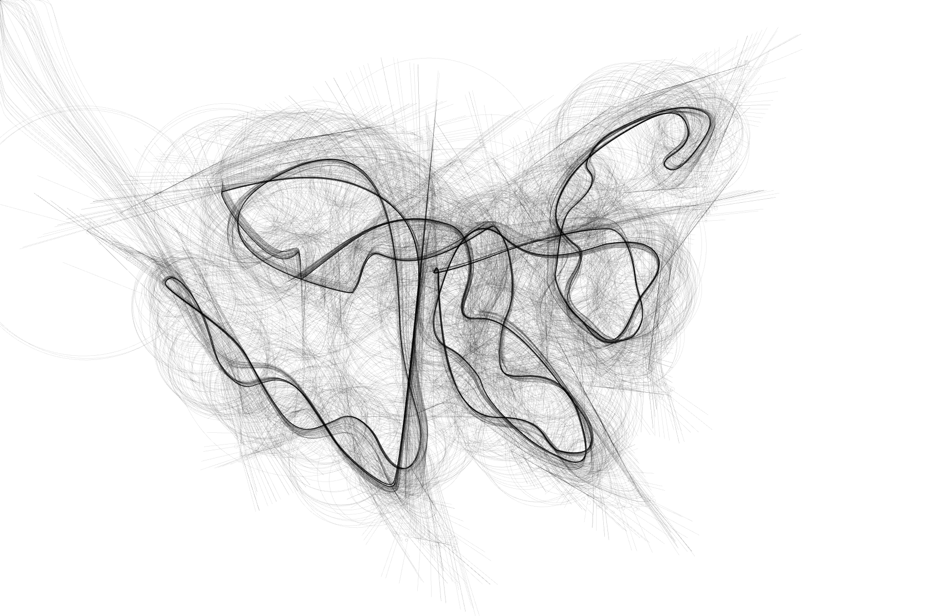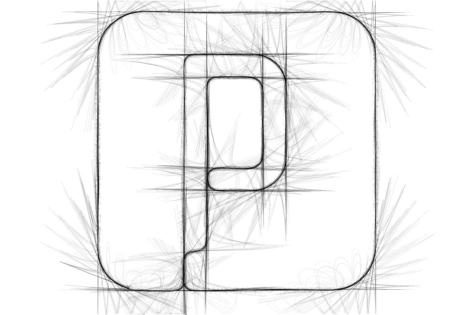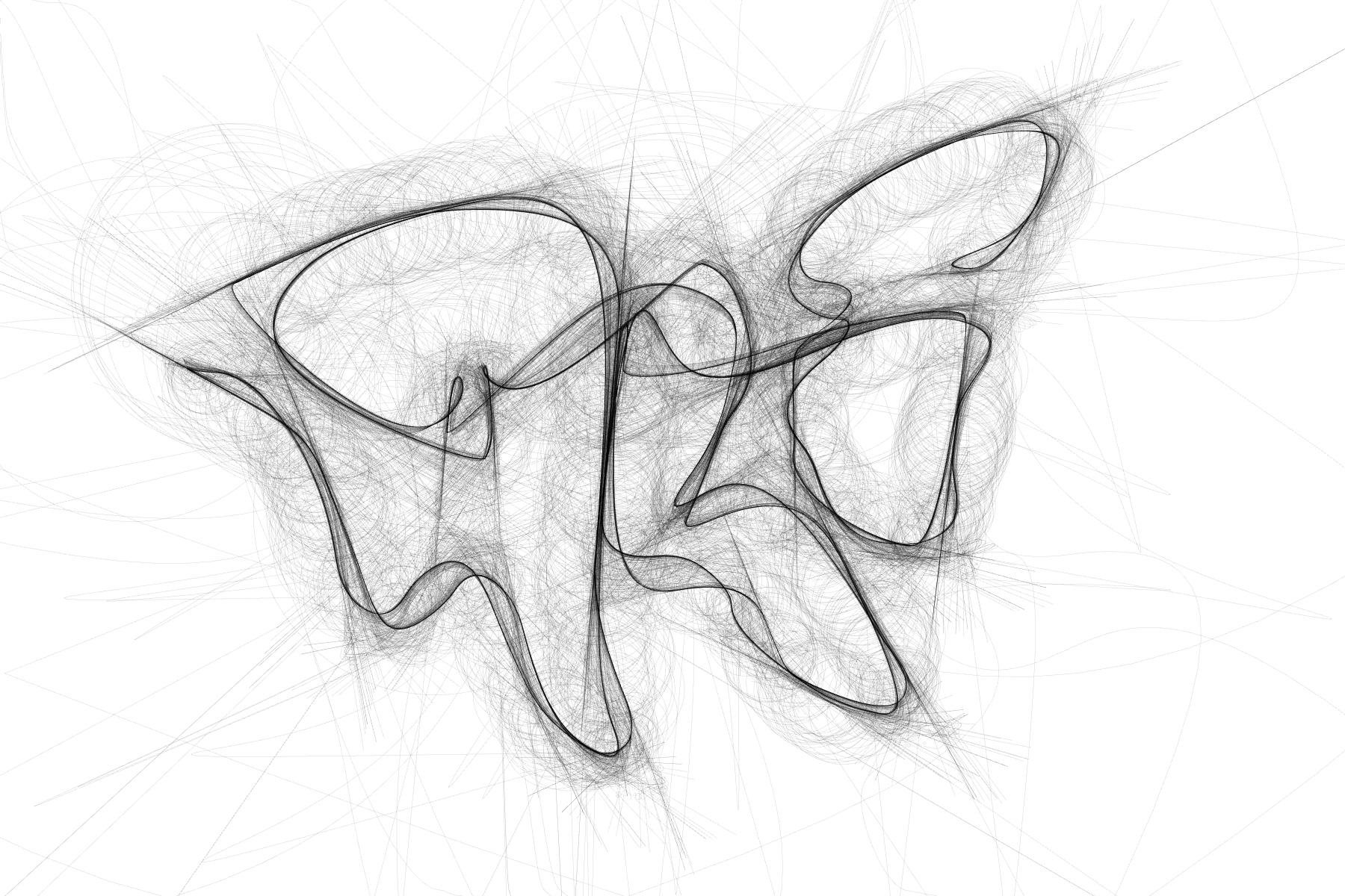 Generative is an application that creates generative images based on user-drawn traces. The program uses a dynamic particle system to render curves, lines, and other shapes. The particles continuously die and respawn as the tracer head moves, resulting in sketch-like representations of the original input. The particle system’s parameters can be adjusted to produce a wide range of visual styles. The images shown here are just a few examples of what the software can generate.